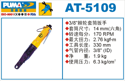 1.如阁下对AT-5109巨霸棘轮套筒扳手 14mm价格和使用方法等有需求时,我们的客服人员将为阁下找到解决AT-5109巨霸棘轮套筒扳手 14mm问题的方法。