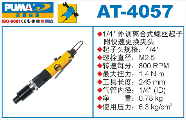 1.如阁下对AT-4057 外调离合式风批价格和使用方法等有需求时,我们的客服人员将为阁下找到解决AT-4057 外调离合式风批问题的方法。