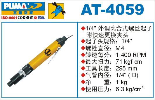 1.如阁下对AT-4059 外调离合式风批价格和使用方法等有需求时,我们的客服人员将为阁下找到解决AT-4059 外调离合式风批问题的方法。