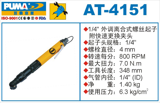 1.如阁下对AT-4151 外调离合式风批价格和使用方法等有需求时,我们的客服人员将为阁下找到解决AT-4151 外调离合式风批问题的方法。