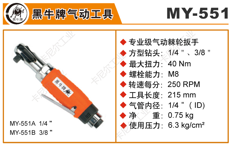 1.如阁下对MY-551A黑牛1/4"气动棘轮扳手价格和使用方法等有需求时,我们的客服人员将为阁下找到解决MY-551A黑牛1/4"气动棘轮扳手问题的方法。
