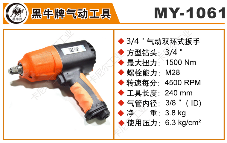 气动扳手 MY-1061黑牛3/4" 气动双环式扳手(塑胶本体)