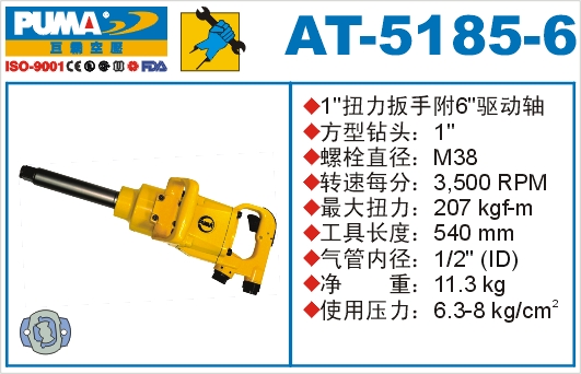 3.我们将对AT-5185-6巨霸气动扳手提供免费送检,阁下在签收快递前请详细核查AT-5185-6巨霸气动扳手资料信息。