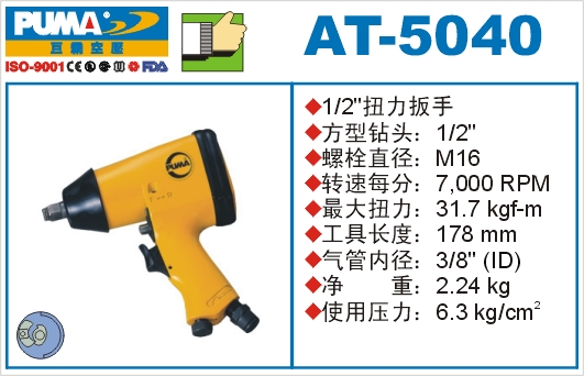1.如阁下对AT-5040巨霸气动扳手价格和使用方法等有需求时,我们的客服人员将为阁下找到解决AT-5040巨霸气动扳手问题的方法。