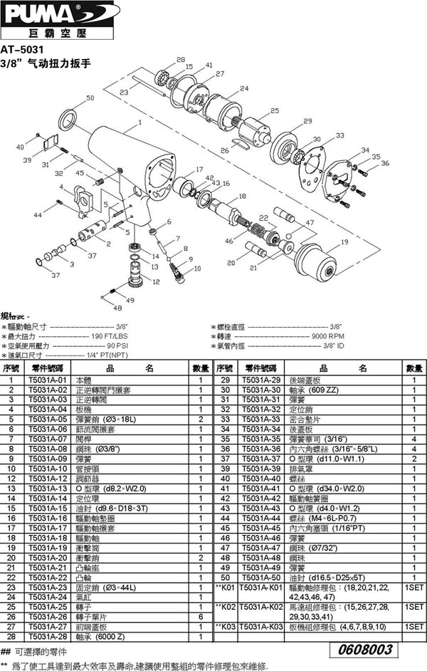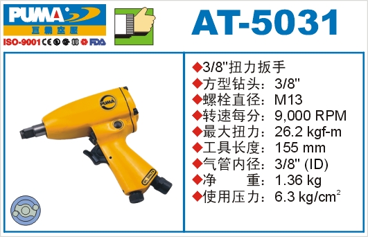 3.我们将对AT-5031巨霸3/8"气动扳手提供免费送检,阁下在签收快递前请详细核查AT-5031巨霸3/8"气动扳手资料信息。