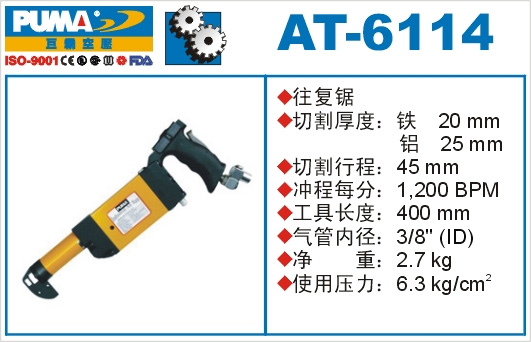 1.如阁下对AT-6114风动往复锯价格和使用方法等有需求时,我们的客服人员将为阁下找到解决AT-6114风动往复锯问题的方法。