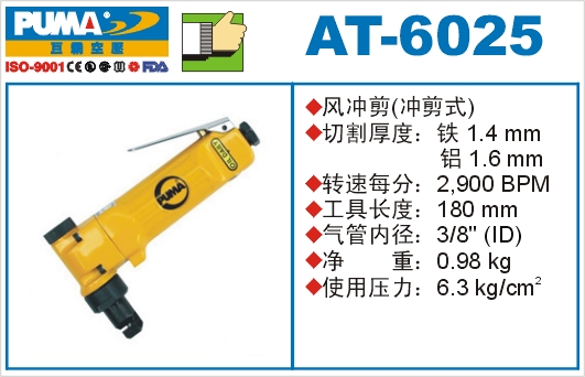1.如阁下对AT-6025风动剪(冲剪式)价格和使用方法等有需求时,我们的客服人员将为阁下找到解决AT-6025风动剪(冲剪式)问题的方法。