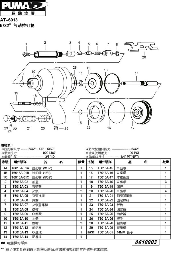 更多..AT-6013 5/32"全气式拉钉枪其它相关产品