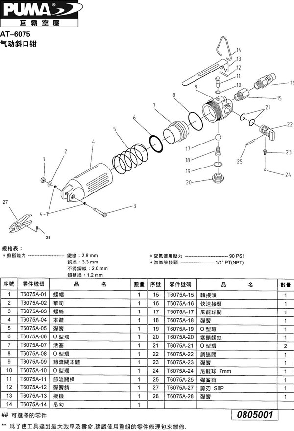 1.如阁下对AT-6075气动斜口钳价格和使用方法等有需求时,我们的客服人员将为阁下找到解决AT-6075气动斜口钳问题的方法。
