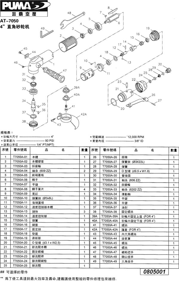 AT-7049 AT-7049 2"直角砂轮机 -2″/5022000