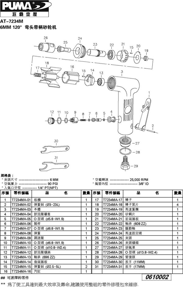 3.我们将对AT-7234M 6mm 105°弯角带柄砂轮机(无齿轮传动)提供免费送检,阁下在签收快递前请详细核查AT-7234M 6mm 105°弯角带柄砂轮机(无齿轮传动)资料信息。