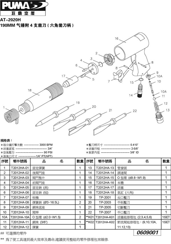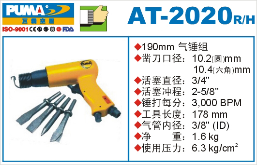 1.如阁下对AT-2020 190mm气锤附4支凿刀价格和使用方法等有需求时,我们的客服人员将为阁下找到解决AT-2020 190mm气锤附4支凿刀问题的方法。