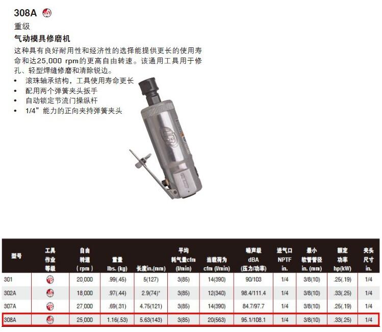 1.如阁下对英格索兰308A气动模具修磨机(HVY重量级工具)价格和使用方法等有需求时,我们的客服人员将为阁下找到解决英格索兰308A气动模具修磨机(HVY重量级工具)问题的方法。