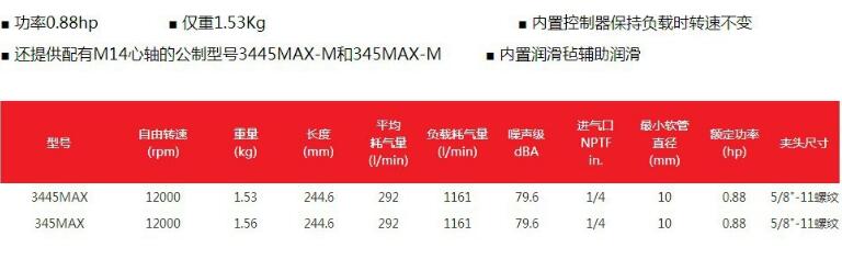 还提供配有M14心轴的公制型号(3445MAX-M)