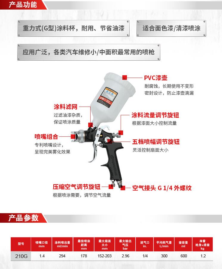 应用广乏,各类汽车维修小/中面积最常用的喷枪