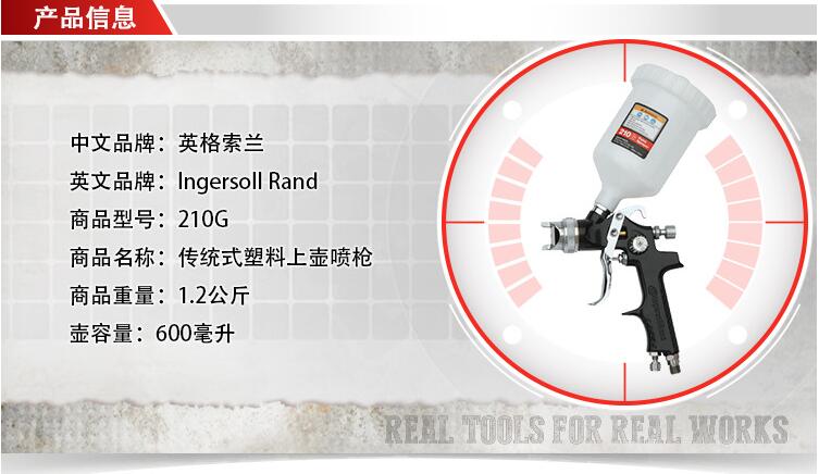 英格索兰 210G 传统式塑料上壶喷枪产品详细说明
