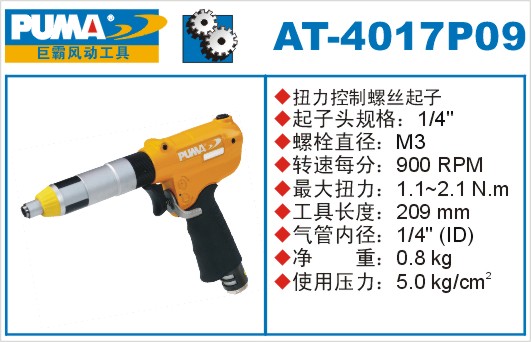 1.如阁下对AT-4017P09 巨霸枪型扭力控制螺丝起子价格和使用方法等有需求时,我们的客服人员将为阁下找到解决AT-4017P09 巨霸枪型扭力控制螺丝起子问题的方法。