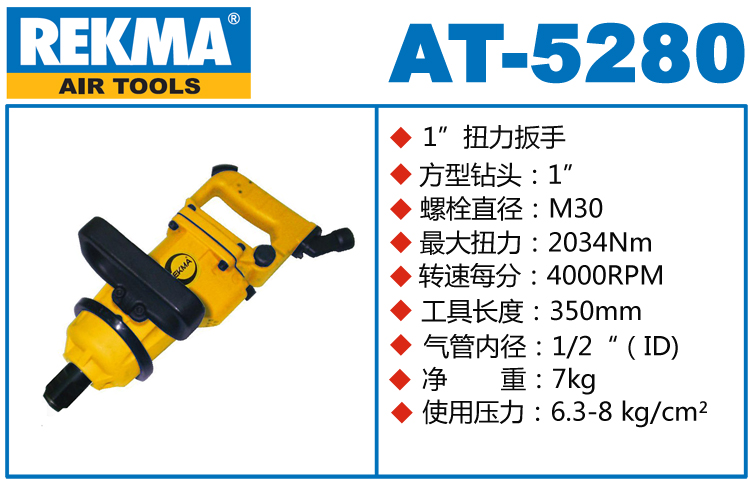 1.如阁下对REKMA AT-5280 锐克马气动扳手价格和使用方法等有需求时,我们的客服人员将为阁下找到解决REKMA AT-5280 锐克马气动扳手问题的方法。