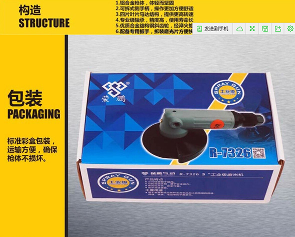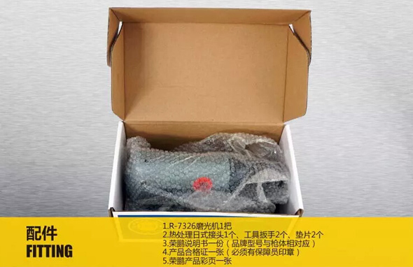 3.我们将对R-7326荣鹏气动打磨机提供免费送检,阁下在签收快递前请详细核查R-7326荣鹏气动打磨机资料信息。