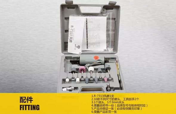 3.我们将对R-7313荣鹏气动工具风磨套装提供免费送检,阁下在签收快递前请详细核查R-7313荣鹏气动工具风磨套装资料信息。