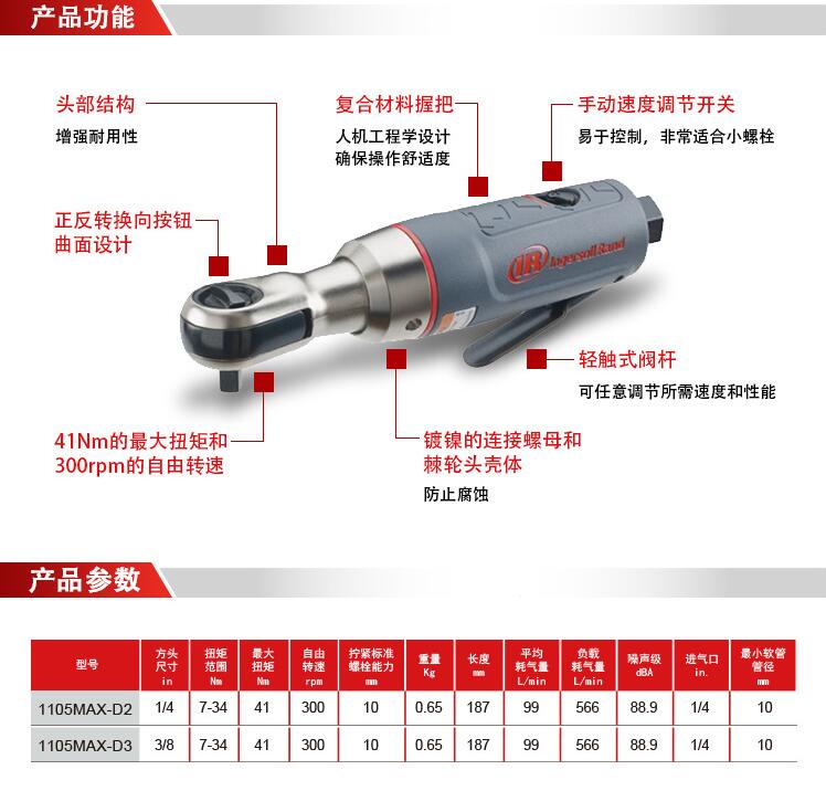 更多..英格索兰1105MAX-D3 3/8气动棘轮扳手其它相关产品