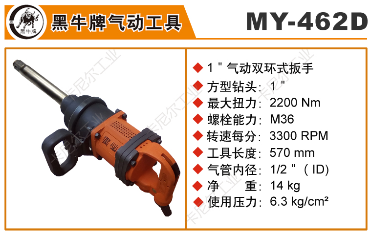 1.如阁下对MY-462D黑牛1"气动单锤式扳手(风炮)价格和使用方法等有需求时,我们的客服人员将为阁下找到解决MY-462D黑牛1"气动单锤式扳手(风炮)问题的方法。