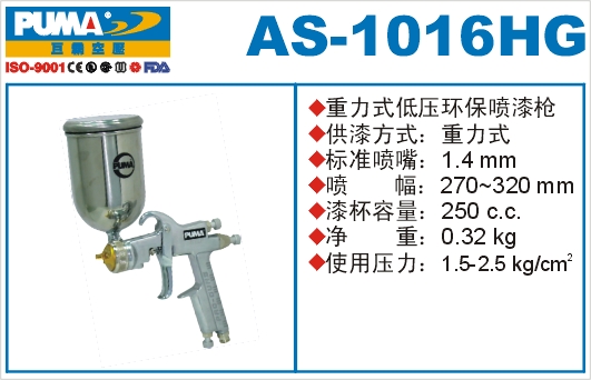 AS-1016HG重力式低压环保喷漆枪