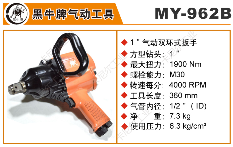 3.我们将对MY-962B黑牛1"双环式气动扳手提供免费送检,阁下在签收快递前请详细核查MY-962B黑牛1"双环式气动扳手资料信息。
