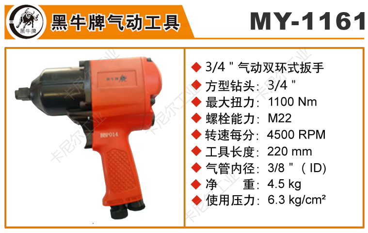 1.如阁下对MY-1161黑牛3/4"气动双环式扳手价格和使用方法等有需求时,我们的客服人员将为阁下找到解决MY-1161黑牛3/4"气动双环式扳手问题的方法。