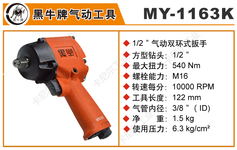 1.如阁下对MY-1163K黑牛气动冲击扳手1/2″价格和使用方法等有需求时,我们的客服人员将为阁下找到解决MY-1163K黑牛气动冲击扳手1/2″问题的方法。