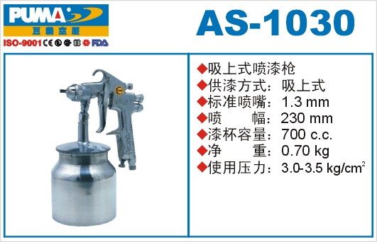 1.如阁下对AS-1030吸上式喷漆枪价格和使用方法等有需求时,我们的客服人员将为阁下找到解决AS-1030吸上式喷漆枪问题的方法。