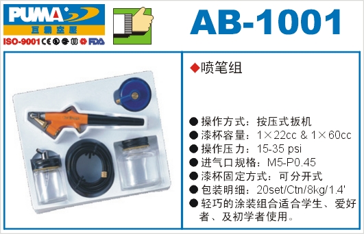 1.如阁下对AB-1001喷笔组价格和使用方法等有需求时,我们的客服人员将为阁下找到解决AB-1001喷笔组问题的方法。