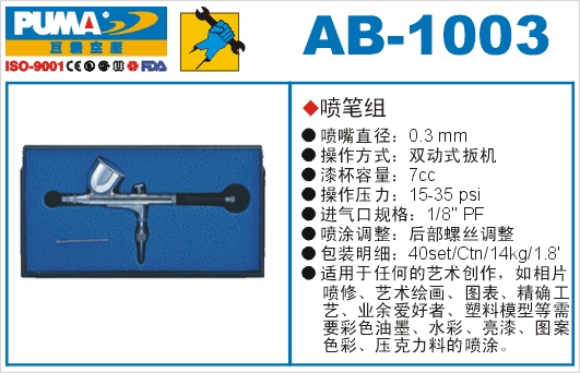 1.如阁下对AB-1003喷笔组价格和使用方法等有需求时,我们的客服人员将为阁下找到解决AB-1003喷笔组问题的方法。
