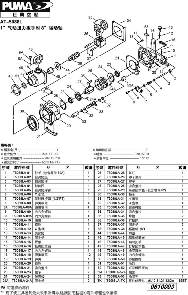 1.如阁下对AT-5088L巨霸1″气动扭力扳手附8″驱动轴(框式双锤打块)价格和使用方法等有需求时,我们的客服人员将为阁下找到解决AT-5088L巨霸1″气动扭力扳手附8″驱动轴(框式双锤打块)问题的方法。