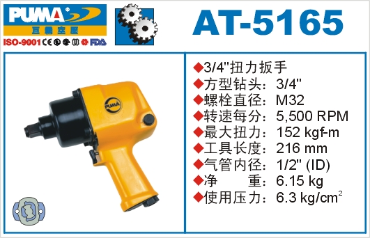 1.如阁下对AT-5165巨霸3/4"气动扳手价格和使用方法等有需求时,我们的客服人员将为阁下找到解决AT-5165巨霸3/4"气动扳手问题的方法。