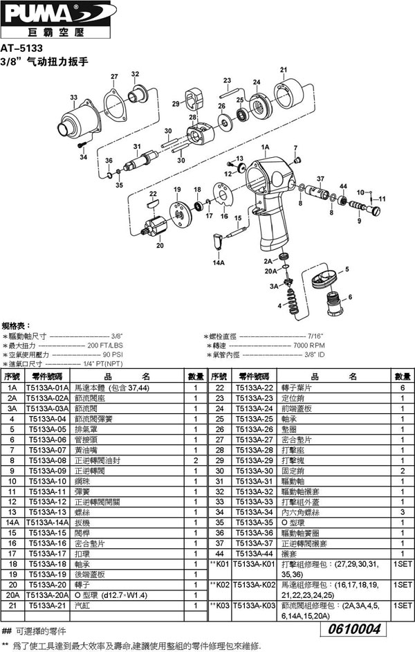 1.如阁下对AT-5133巨霸3/8"气动扳手价格和使用方法等有需求时,我们的客服人员将为阁下找到解决AT-5133巨霸3/8"气动扳手问题的方法。