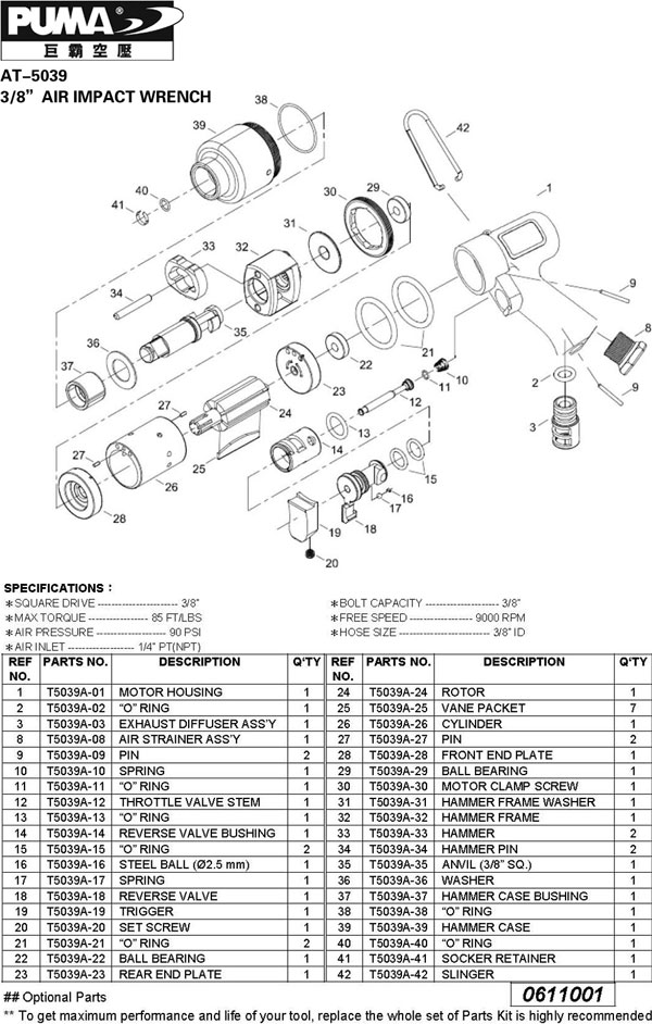 3.我们将对AT-5039巨霸气动扳手提供免费送检,阁下在签收快递前请详细核查AT-5039巨霸气动扳手资料信息。