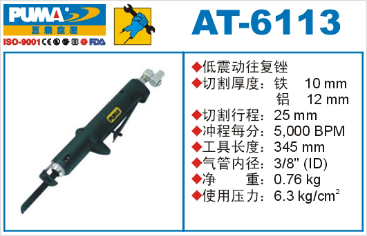 3.我们将对AT-6113低震动风动往复锯提供免费送检,阁下在签收快递前请详细核查AT-6113低震动风动往复锯资料信息。