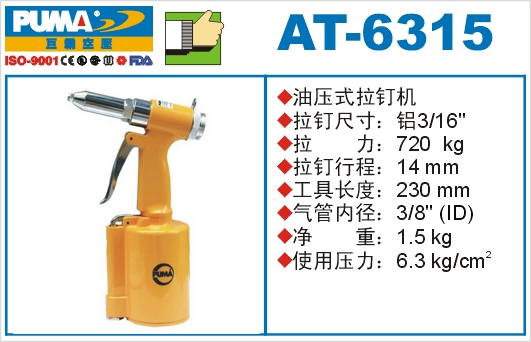 更多..AT-6315 3/16"气动油压式拉钉枪其它相关产品