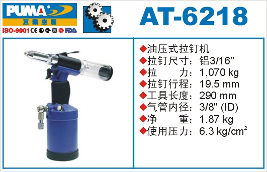 1.如阁下对AT-6218 3/16"气动油压式拉钉枪价格和使用方法等有需求时,我们的客服人员将为阁下找到解决AT-6218 3/16"气动油压式拉钉枪问题的方法。