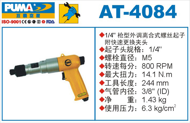 1.如阁下对AT-4084 巨霸离合式风批价格和使用方法等有需求时,我们的客服人员将为阁下找到解决AT-4084 巨霸离合式风批问题的方法。