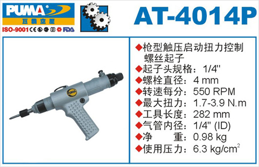 1.如阁下对AT-4014P 触压启动扭力控制螺丝起子价格和使用方法等有需求时,我们的客服人员将为阁下找到解决AT-4014P 触压启动扭力控制螺丝起子问题的方法。