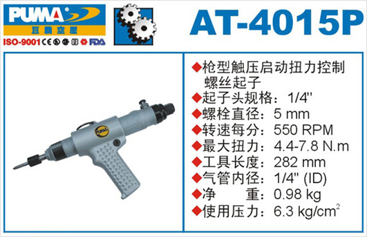 1.如阁下对AT-4015P 触压启动扭力控制螺丝起子价格和使用方法等有需求时,我们的客服人员将为阁下找到解决AT-4015P 触压启动扭力控制螺丝起子问题的方法。