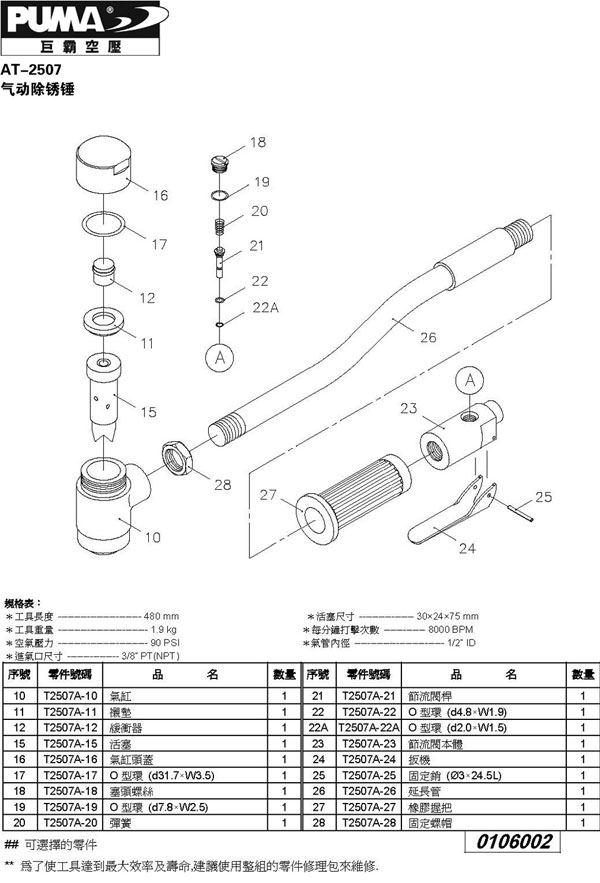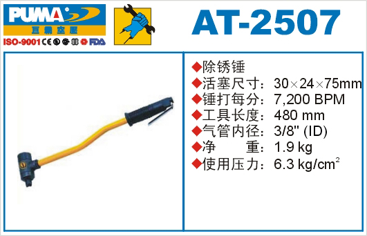 1.如阁下对AT-2507气动除锈锤价格和使用方法等有需求时,我们的客服人员将为阁下找到解决AT-2507气动除锈锤问题的方法。