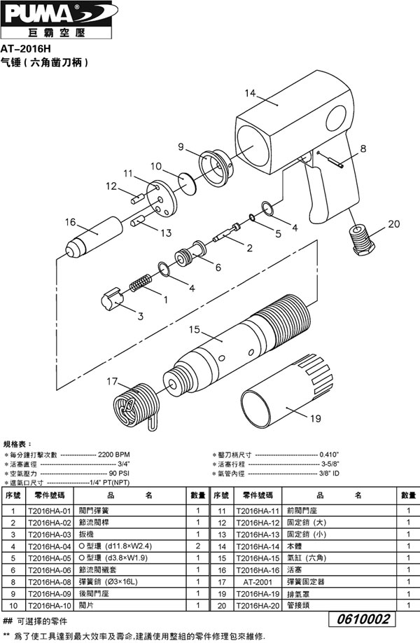 AT-2016/H 250mm 气锤(六角)