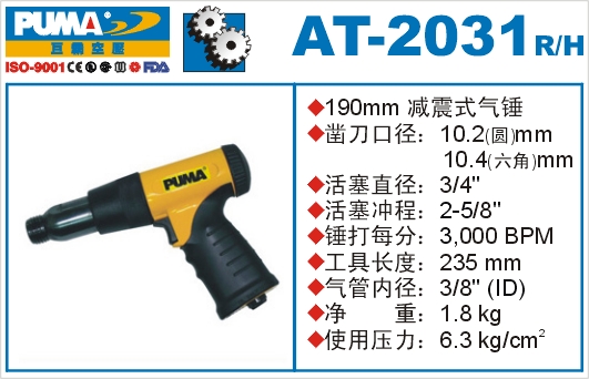 更多..AT-2031 190mm减震式气锤其它相关产品