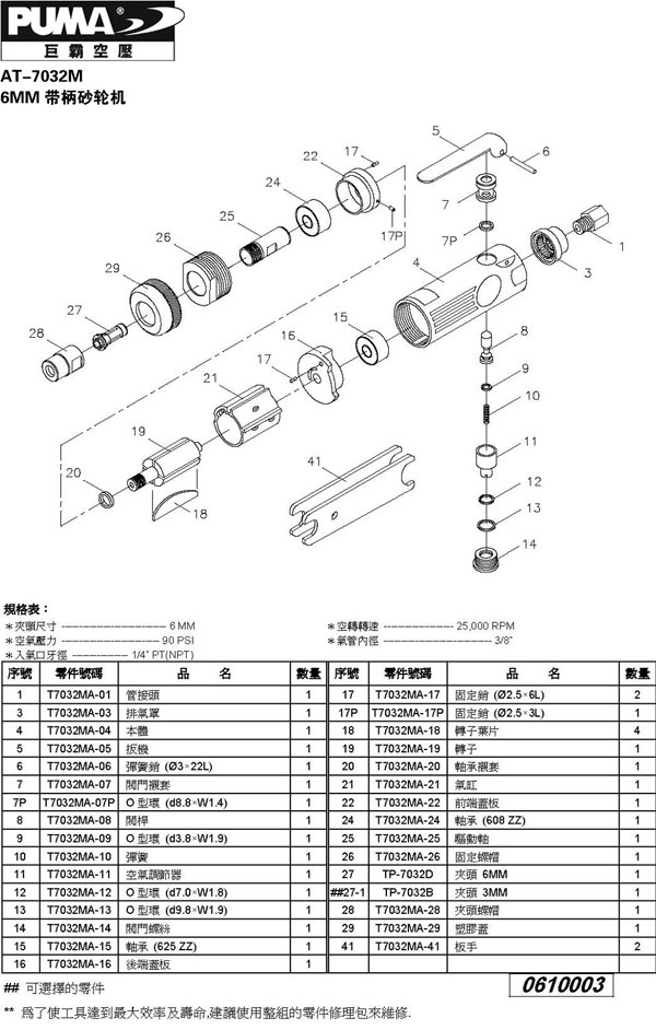 3.我们将对AT-7032M 巨霸6mm带柄砂轮机(后排气)提供免费送检,阁下在签收快递前请详细核查AT-7032M 巨霸6mm带柄砂轮机(后排气)资料信息。