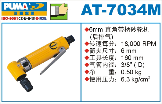 1.如阁下对AT-7034M 6mm直角带柄砂轮机(后排气)价格和使用方法等有需求时,我们的客服人员将为阁下找到解决AT-7034M 6mm直角带柄砂轮机(后排气)问题的方法。