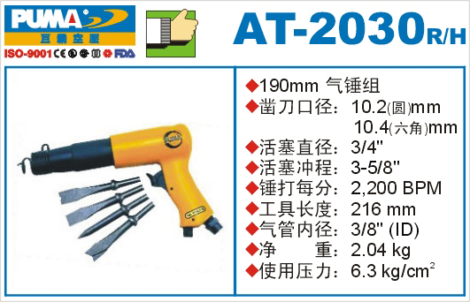 1.如阁下对AT-2030R 250mm气锤 圆价格和使用方法等有需求时,我们的客服人员将为阁下找到解决AT-2030R 250mm气锤 圆问题的方法。