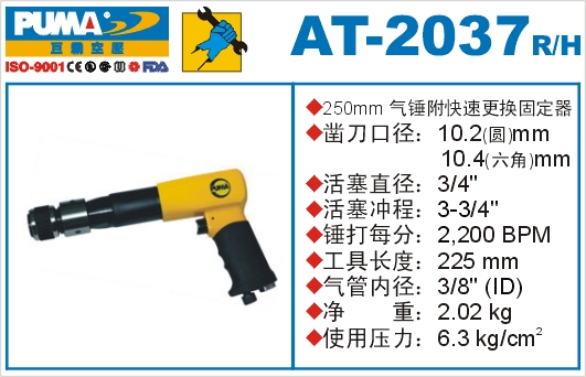 0条 [查看全部]  AT-2037 250mm气锤附快速更换固定器相关评论